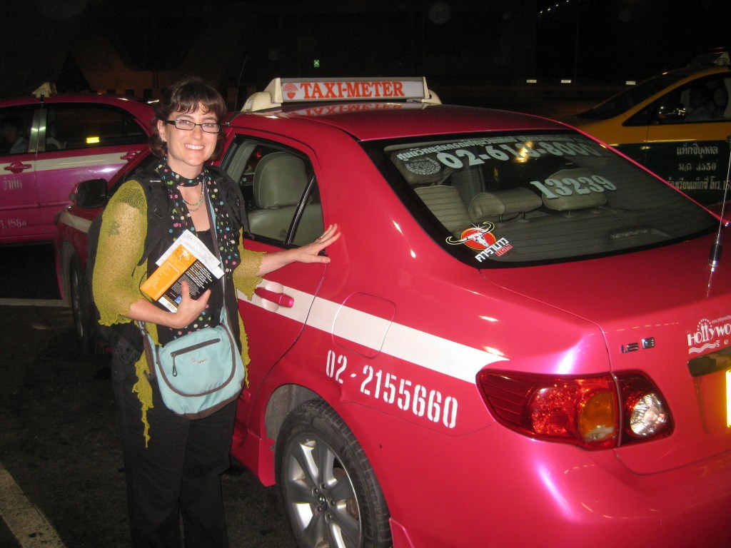 There was absolutely no problem with finding a cab. After the gleaming steel and blue accents of the interior of BKK (their thematic blend of what BKK should be and a nod to Christmas), we stepped from the air-conditioned lobby and belly-flopped, horizontally, into the hot and moist Thai atmosphere, but before we had time to sweat one single bead we found ourselves before a row of garish, hot pink taxicabs. Our enormous beige bags were hustled into the back, our destination was carefully enunciated to a capably fluent driver, and off we went in search of Sukhumvit, one of the main streets in Bangkok.