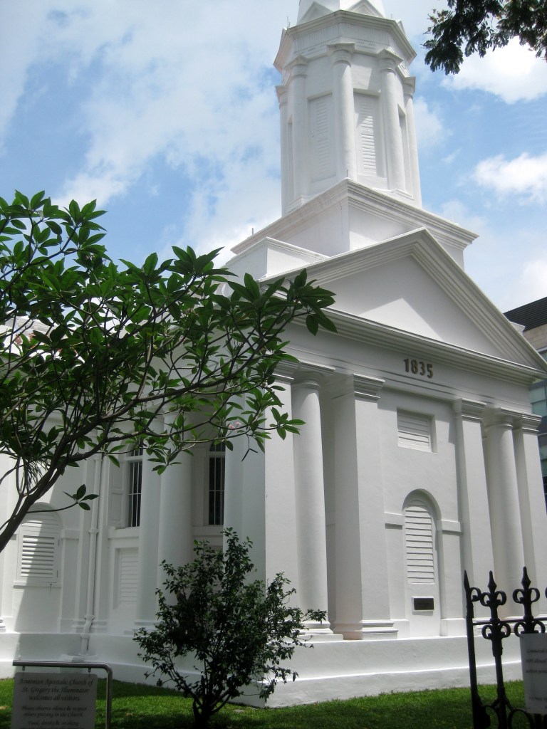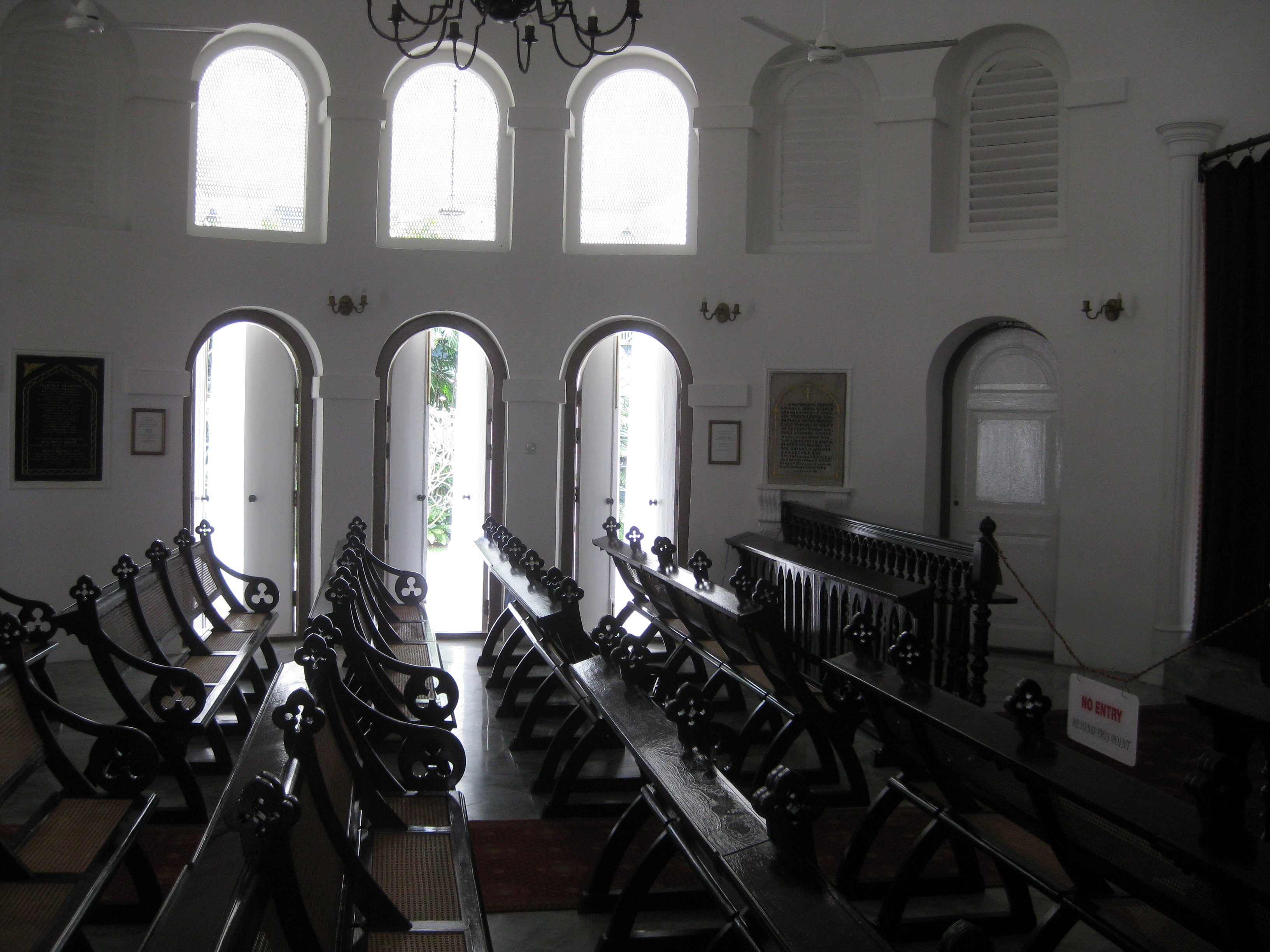 Without guides, we were let into Maghain Aboth Synagogue, “the oldest surviving synagogue in Singapore and Southeast Asia.” Now, I’ve never seen Jews knocking from door to door in search of converts. My impression is that you’re born into the religion, and sometimes you can convert to it for cases like marriage, so this place is here to serve the Jewish community that emigrated here. No one handed us literature, no one tried to persuade me to change my ways. In fact, I saw very few people here at all, and most of those I saw weren’t wearing kippahs or payot or anything. I’d guess many of the workers looked Indian or Malay, though I have no idea what an inherently Tamil countenance looks like.