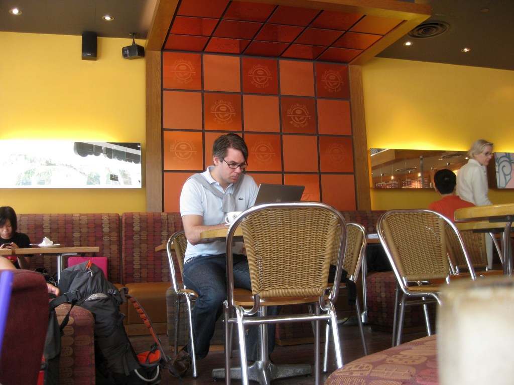 We retrieved our possessions, thanked the guards, and wandered off. All this walking around and being overwhelmed by world cultures and history meant it was time to chill out in a coffee shop. Coffee Bean & Tea Leaf was right around the corner on Bras Basah Road so we set up there and recaffeinated. Our hotel was conveniently near a number of coffee shops, but it’s restorative to take a break and focus on the familiar, after being overwhelmed by all the stimuli another nation will inundate you with.